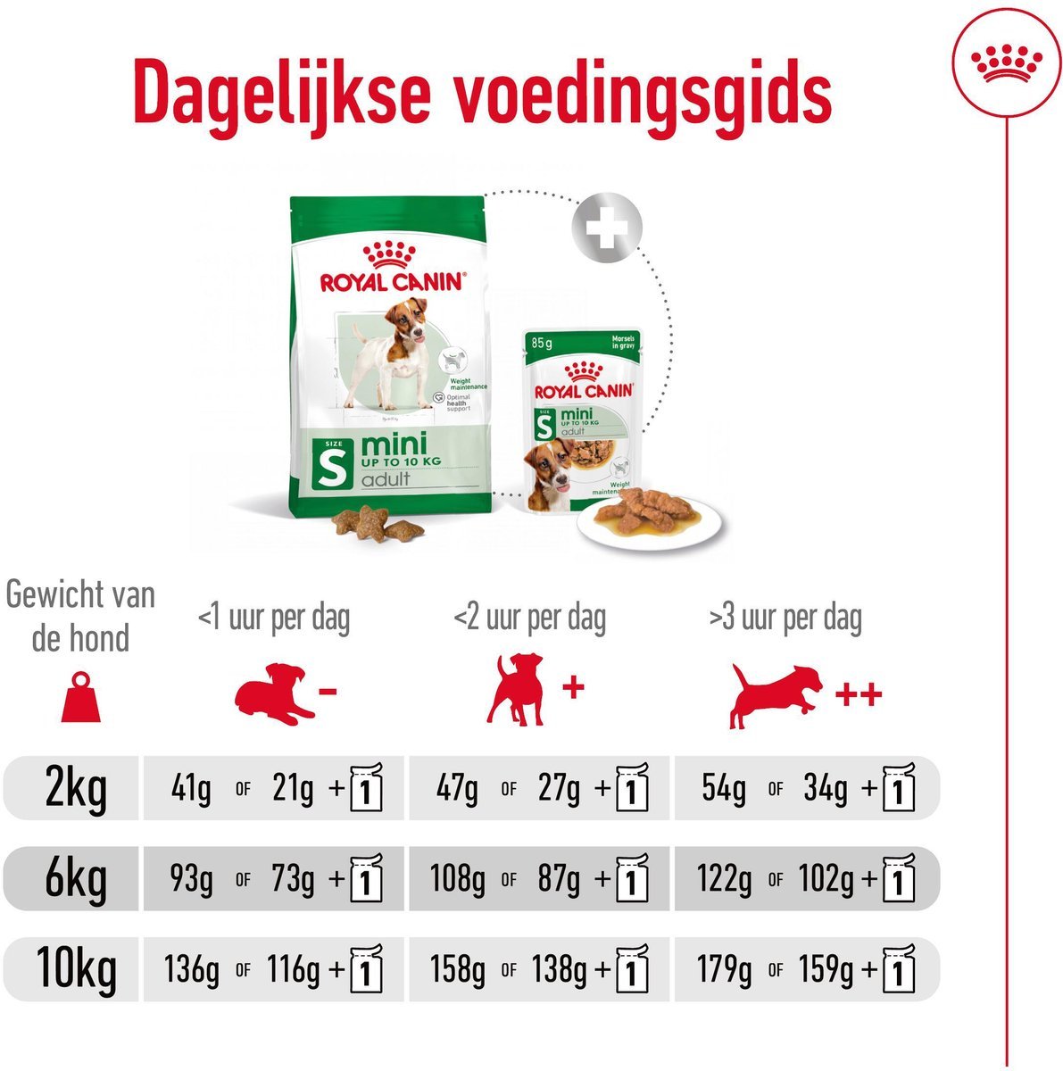 ROYAL CANIN® Mini Adult is ook beschikbaar als natvoeding in overheerlijke saus of gelei. Nat- en droogvoeding combineren zorgt voor variatie in de voeding van je hond, waardoor zijn maaltijden interessanter en boeiender worden.