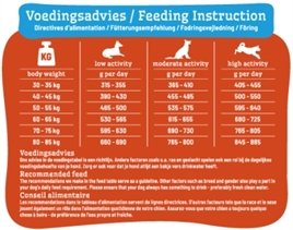 Ruw eiwit 23%, ruwe celstof 3,5%, vetgehalte 12%, ruwe as 6%, calcium 1,2%, fosfor 0,9%, omega-3 vetzuren 0,5%, omega-6 vetzuren 2,1%.